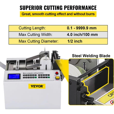- Taglierina Efficiente e Precisa: La taglierina per tubi termoretraibili ha una funzione di taglio a freddo. È dotato del taglio sincrono di 3 nastri. Lunghezza di taglio: 0,1-9999,9 mm; Larghezza di taglio: 4″/100 mm; Diametro massimo di taglio: 1/2″. Con un coltello per saldatura in acciaio bianco e un tamburo di alimentazione ad alta resistenza, il taglio è efficiente.